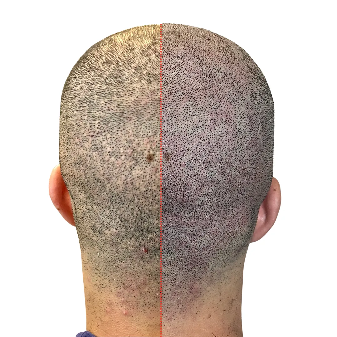 Basically, SMP reduces the contrast between your hair and skin, making it look like you've got a full head of hair, even if you don't.